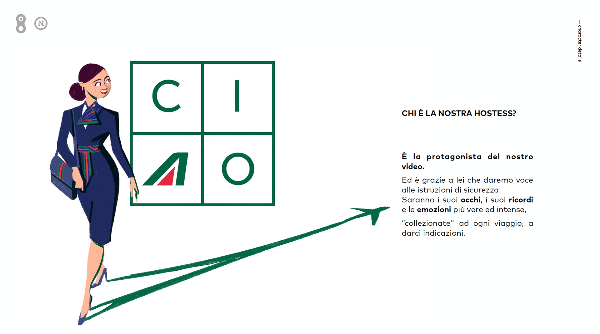 Some explorations on the Alitalia stewardess, the protagonist of the safety video.